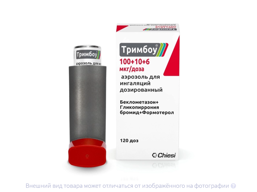 Препарат Тримбоу® содержит 3 активных вещества - беклометазона дипропионат, формотерол и гликопирроний - в дозируемом аэрозольном ингаляторе, аэрозоль которого имеет экстрамелкодисперсные частицы со средним аэродинамическим диаметром около 1.1 мкм, содержащие одновременно 3 активных вещества. Частицы аэрозоля препарата Тримбоу® в среднем намного меньше частиц в лекарственных формах с неэкстрамелкодисперсными частицами. Это приводит к более выраженному эффекту беклометазона дипропионата, по сравнению с лекарственными формами с неэкстрамелкодисперсными частицами (100 мкг беклометазона дипропионата в препарате Тримбоу® с экстрамелкодисперсными частицами аэрозоля эквивалентны по эффективности 250 мкг беклометазона дипропионата в лекарственной форме с неэкстрамелкодисперсными частицами).